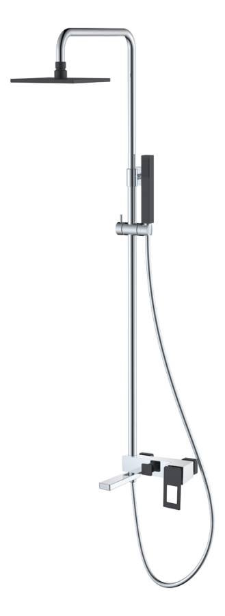 Смеситель; верхний душ; ручной душ; душевая штанга; душевой шланг; гибкая подводка G1/2; крепежный комплект. |