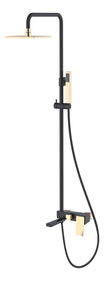 Смеситель; верхний душ; ручной душ; душевая штанга; душевой шланг; гибкая подводка G1/2; крепежный комплект. |