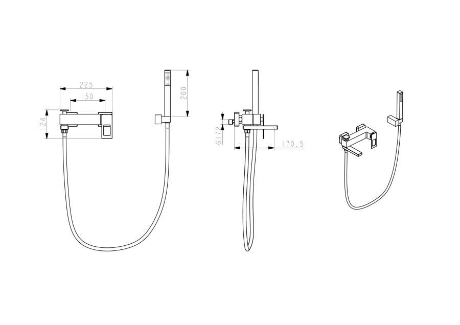 Смеситель для ванны. Ручной душ. Душевой шланг. Держатель ручного душа. Комплект эксцентриков. Комплект креплений. |