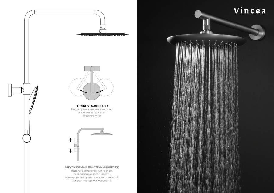 Верхний душ, ручной душ, смеситель со встраиваемой частью |