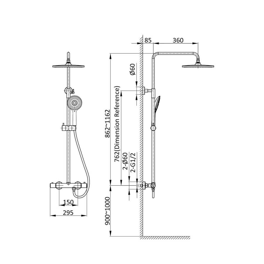 Размер верхнего душа мм.