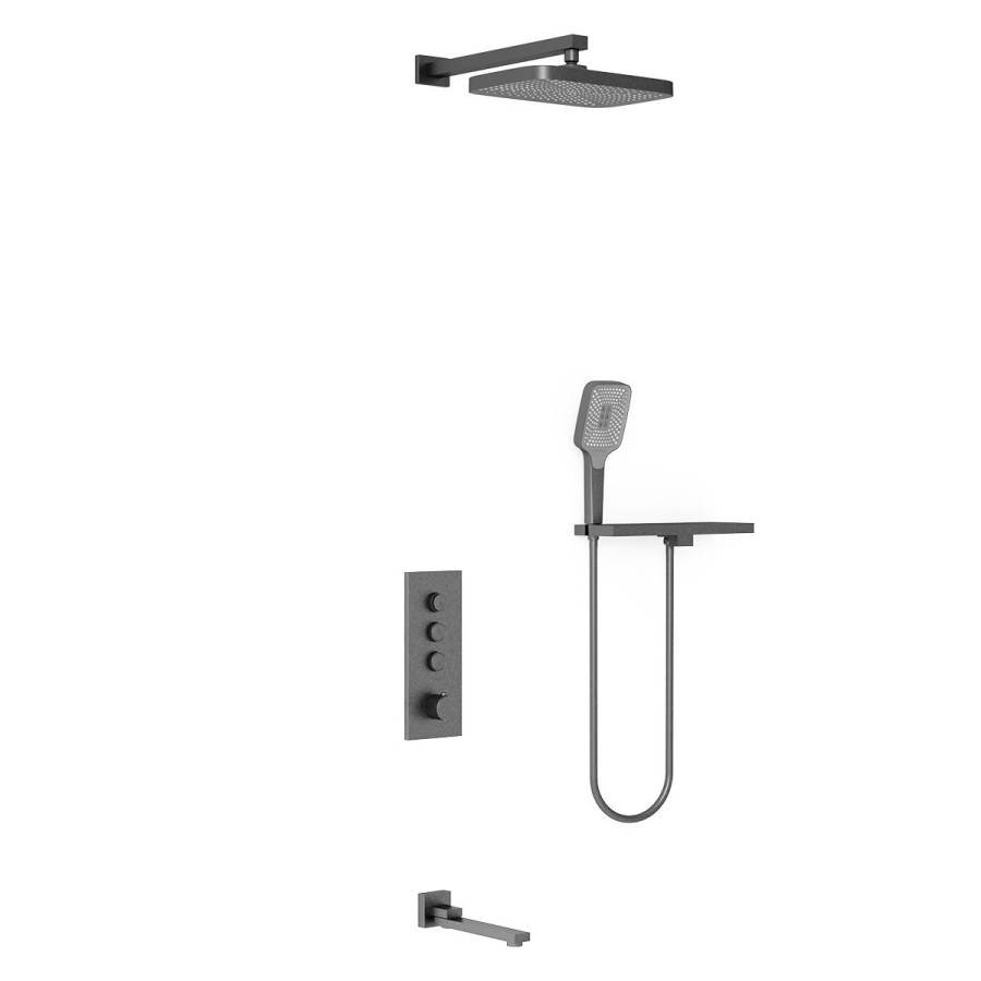 Верхний душ, полка с изливом и держателем ручного душа, ручной душ, смеситель со встраиваемой частью, излив |