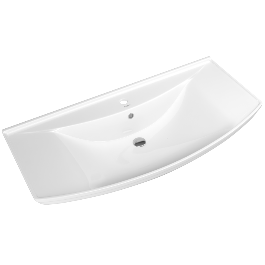 Вместительные полочки по бокам чаши обеспечивают больше места для размещения необходимых мелочей, а встраиваемая в мебельную тумбу конструкция создает дополнительное пространство для хранения.