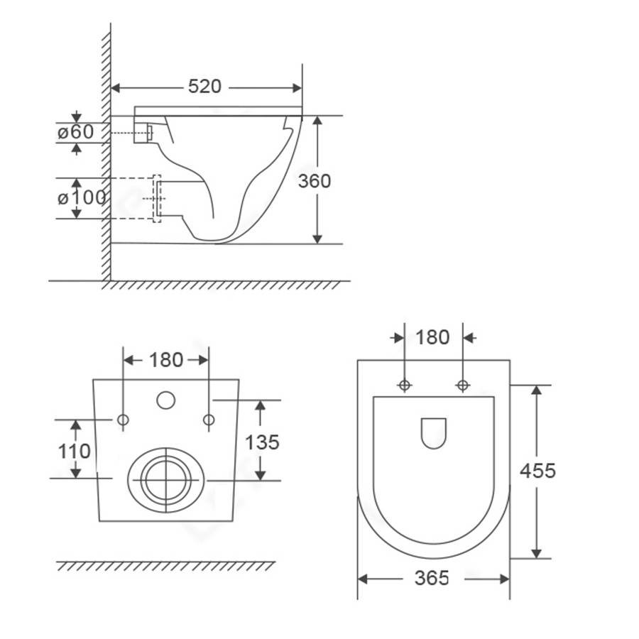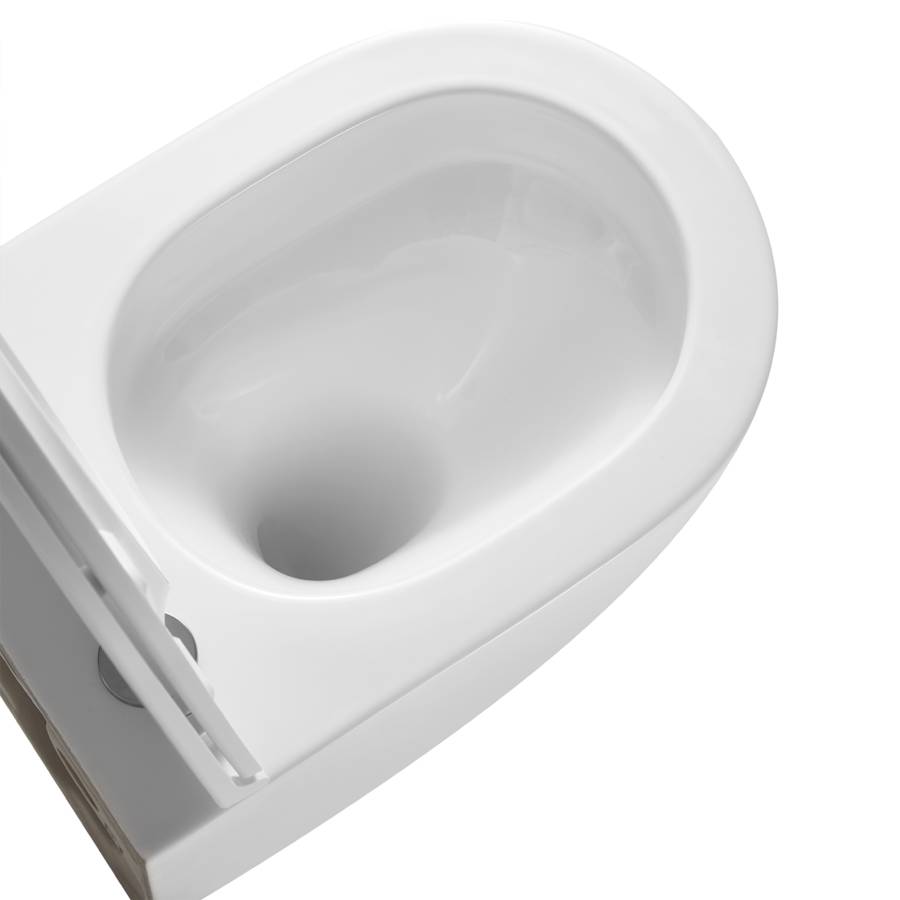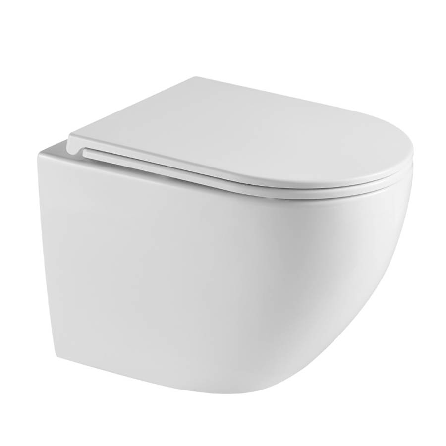 Унитаз настенный керамический безободковый; сиденье для унитаза из дюропласта ультратонкая легкосъемная с функцией плавного закрывания; инструкция/гарантийный талон |