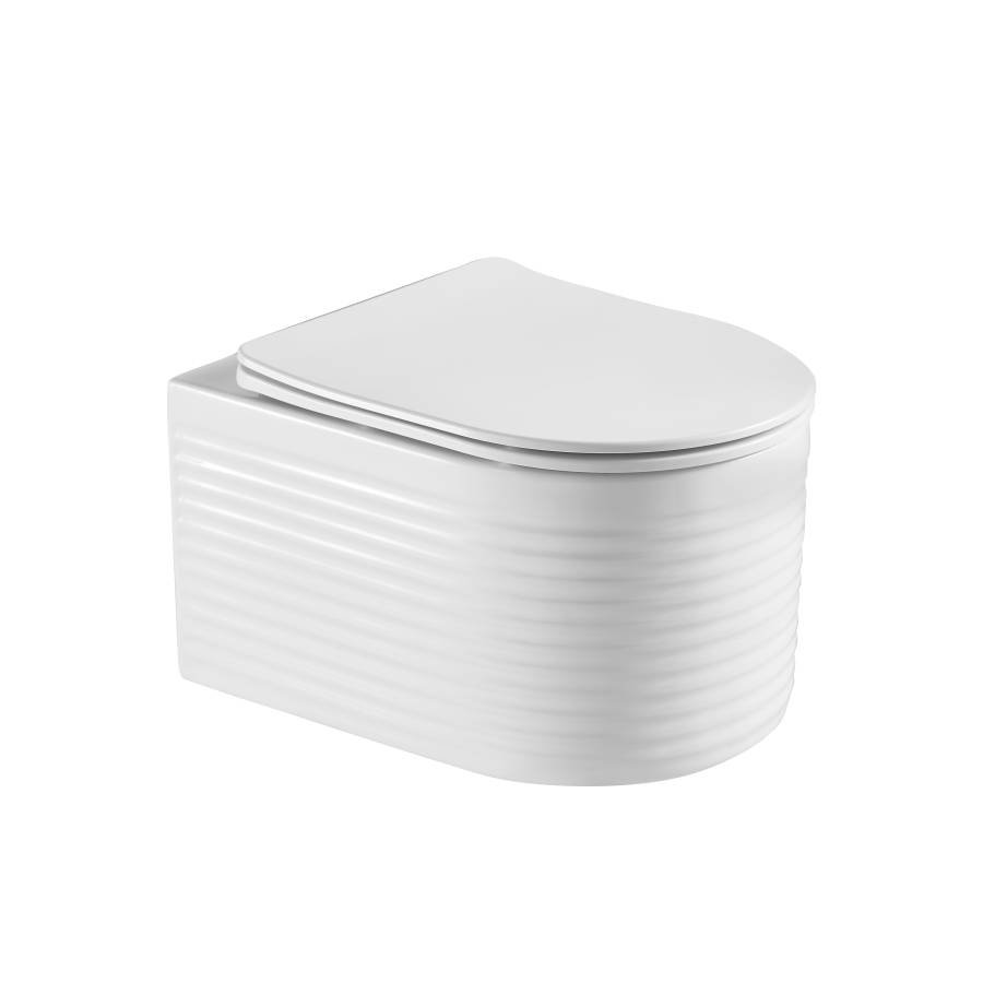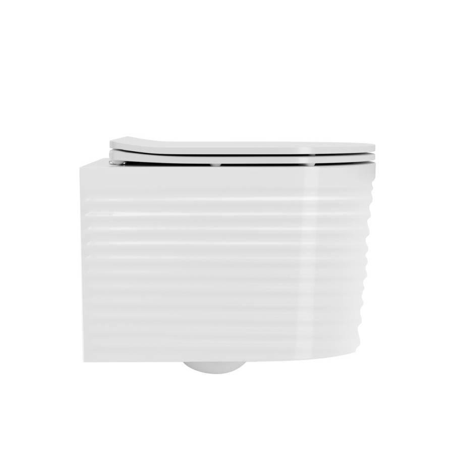 Унитаз настенный керамический безободковый; сиденье для унитаза из дюропласта ультратонкая легкосъемная с функцией плавного закрывания; инструкция/гарантийный талон |