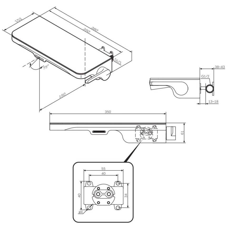 Еще больше полезного пространства: смеситель выполнен в виде вместительной полочки. Внушительный размер полки (35 см) позволяет хранить все любимые средства под рукой а эстетичный силуэт станет настоящим украшением современной ванной комнаты._x000D_