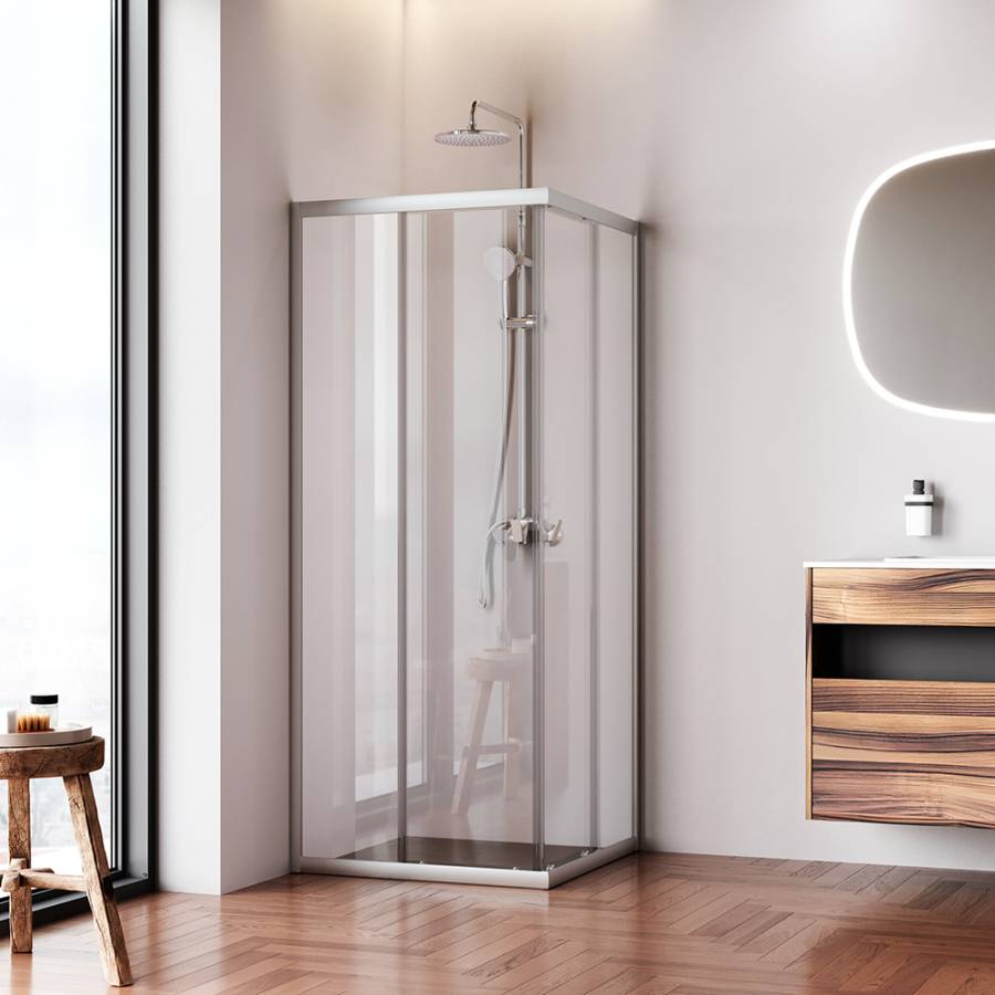 Ограждение имеет сверхпрочные закаленные стёкла. Толщина фиксированных стекол составляет 4 мм двери имеют увеличенную толщину 5 мм. Невероятно плавное и легкое открывание двери благодаря двойным усиленным роликам из ABS-пластика. Нижние ролики обладают функцией быстрого снятия для самой лёгкой уборки. Магнитные уплотнители дверей делают ограждение полностью герметичным и предотвращают попадание воды за пределы душевой зоны._x000D_