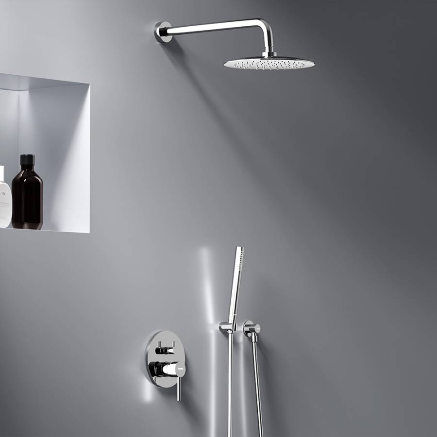 Увеличенный диаметр верхнего душа с возможностью регулировки угла наклона и ручная лейка в трендовой форме стика подарят вам полный спектр ощущений — помогут взбодриться утром и расслабится вечером. Переключайте потоки воды между ручной и тропической лейками плавным поворотом дивертора. _x000D_