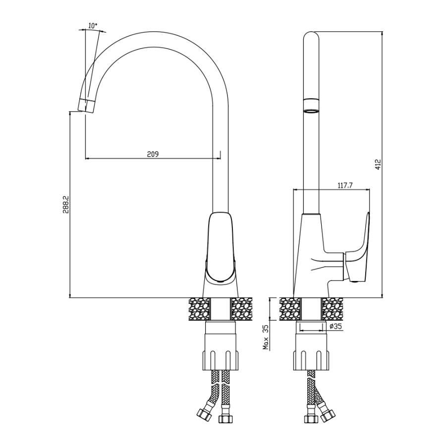 Высота излива см./мм.