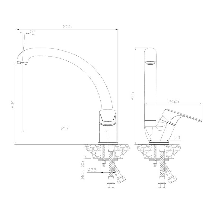Высота излива см./мм.