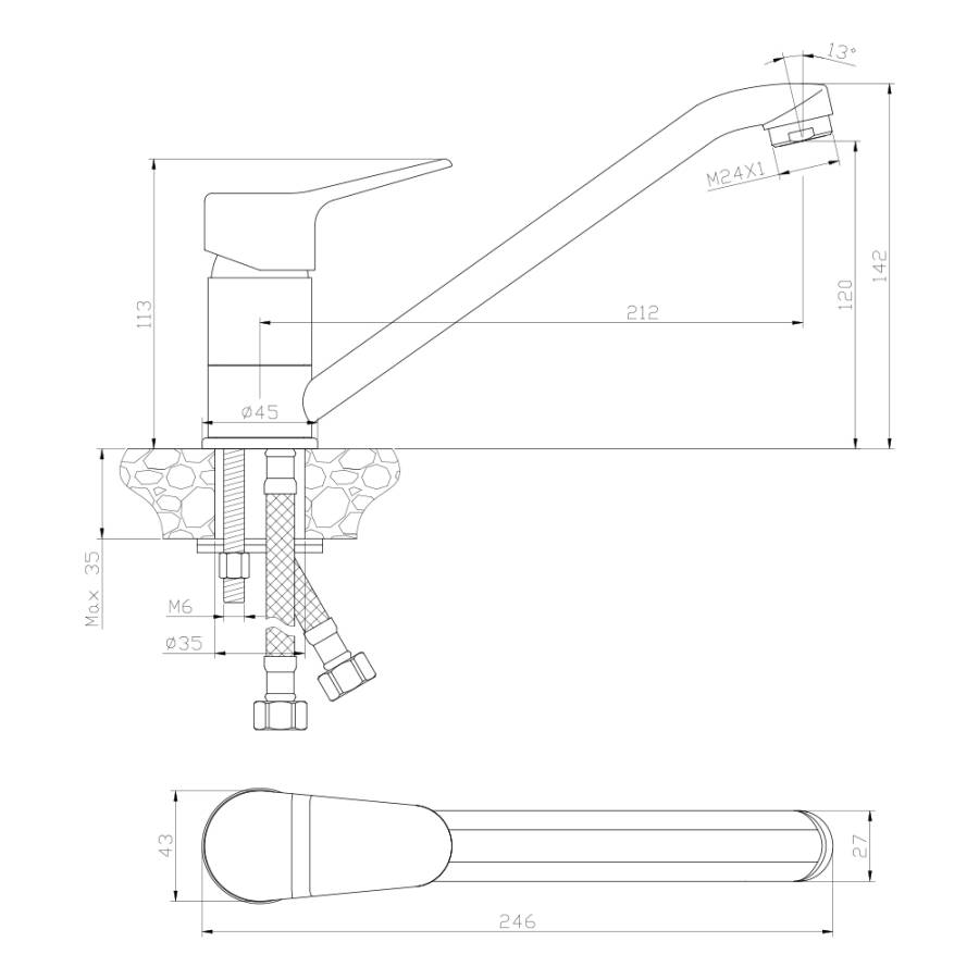 Высота излива см./мм.
