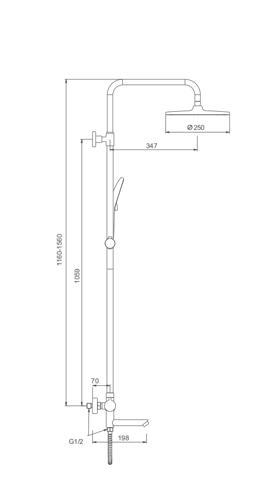 • Форма верхнего душа (ШхД): ∅250мм