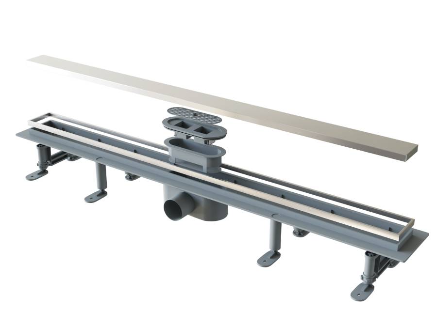 Оснащен практичной двухсторонней крышкой-решеткой из нержавеющей стали AIS 304, позволяющей укладывать плитку, создавая эффект невидимого трапа.