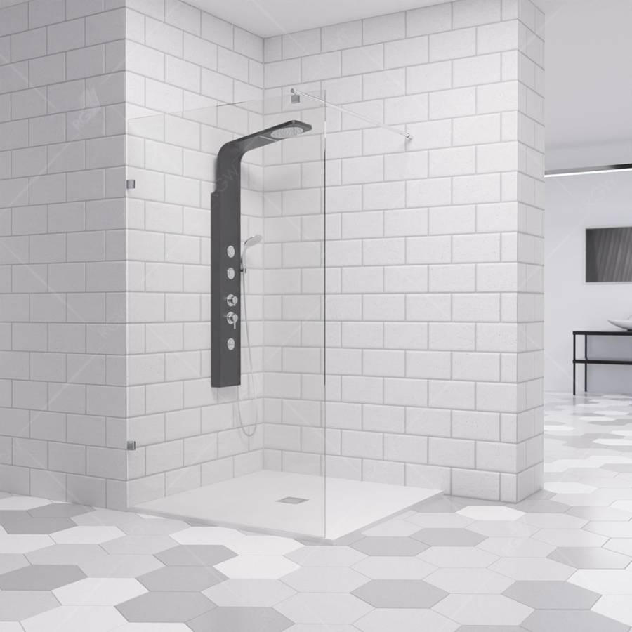 Перегородка изготовлена из 8-ми миллиметрового прозрачного стекла, что делает ее очень прочной и стойкой к механическим повреждениям. Кроме того, она имеет высоту 195 см, что позволит использовать ее даже людям с высоким ростом без каких-либо неудобств.