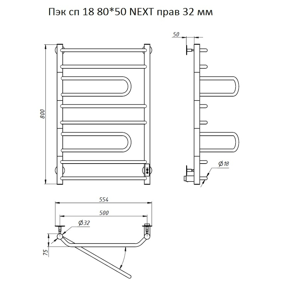 Электропровод с вилкой. Направление подключения: Правое (скрытое) |