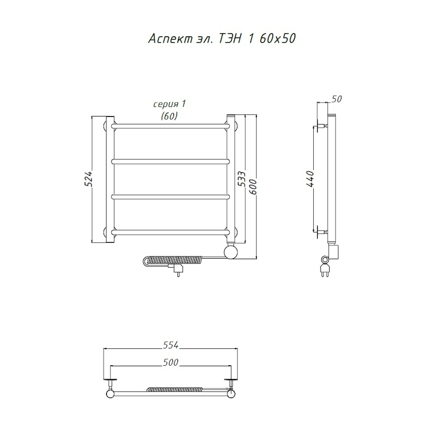 Электропровод с вилкой; Направление подключения: Левое, Правое |