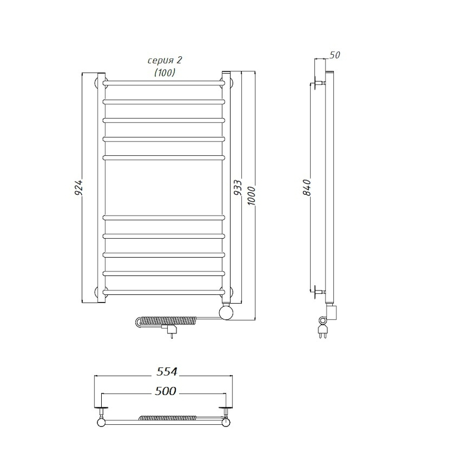 Электропровод с вилкой; Направление подключения: Левое, Правое |