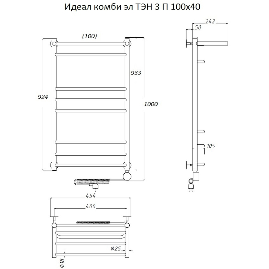 ТЭН 300 Вт, Бытовой антифриз, Заглушка с воздухоотводчиком |