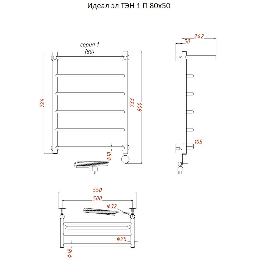 ТЭН 300 Вт, Бытовой антифриз, Заглушка с воздухоотводчиком |