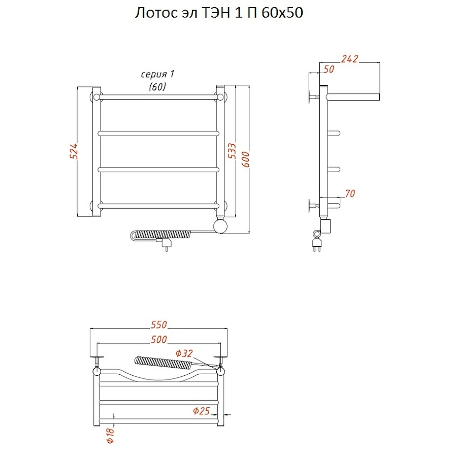 ТЭН 300 Вт, Бытовой антифриз, Заглушка с воздухоотводчиком |