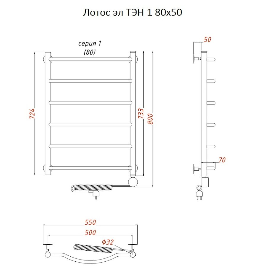 Электропровод с вилкой; Направление подключения: Левое, Правое |