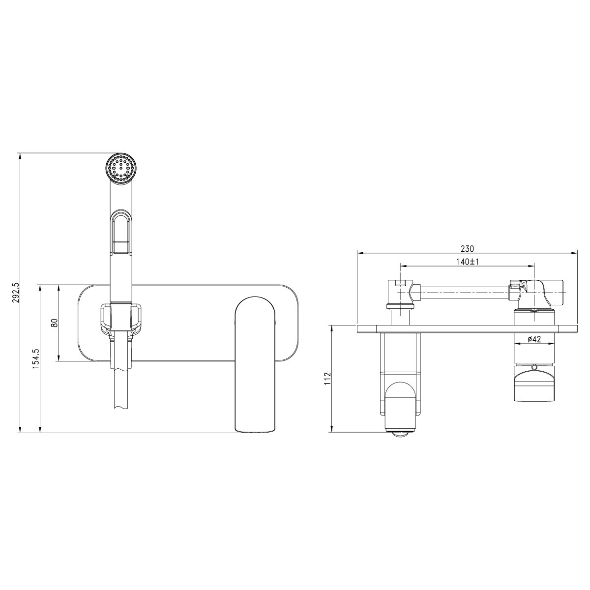 Душевой шланг 1,2 м, настенное крепление, лейка гигиенического душа с регулятором напора воды |