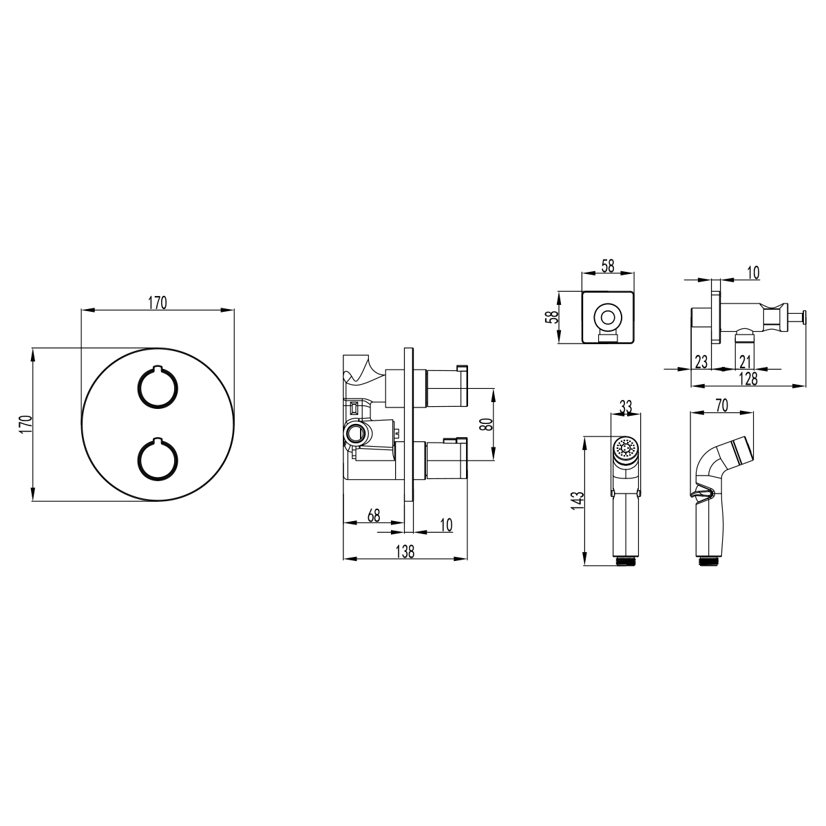 Гигиенический душ, Душевой шланг, Комплект креплений |