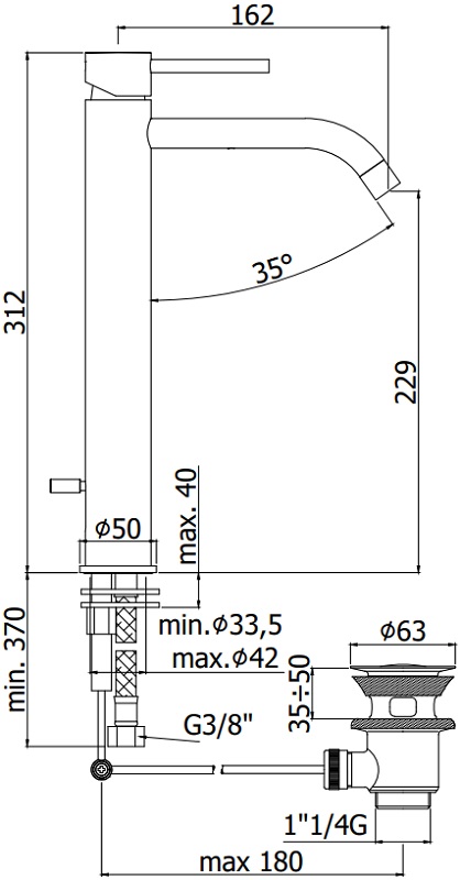 Длина излива см./мм.