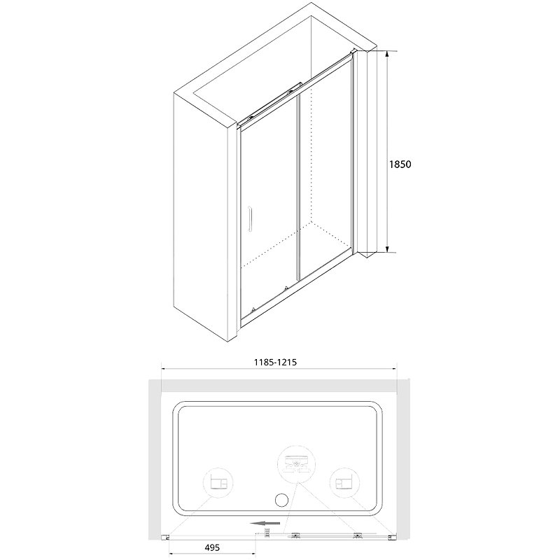 Дверь имеет общую высоту 1850 мм, что подходит для большинства стандартных ванных комнат. Двойные регулируемые ролики обеспечивают плавное и бесшумное открытие и закрытие двери. Благодаря роликовому подшипнику дверь двигается легко и плавно.