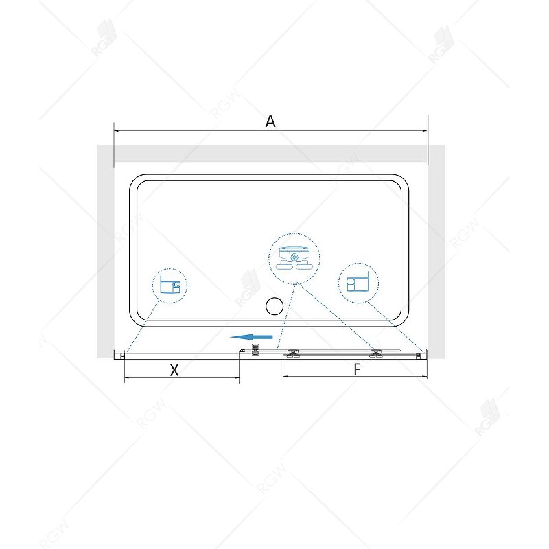 Душевая дверь оснащена роликовыми подшипниками, которые обеспечивают легкое скольжение двери и ее надежную фиксацию. Это делает использование двери удобным и безопасным.