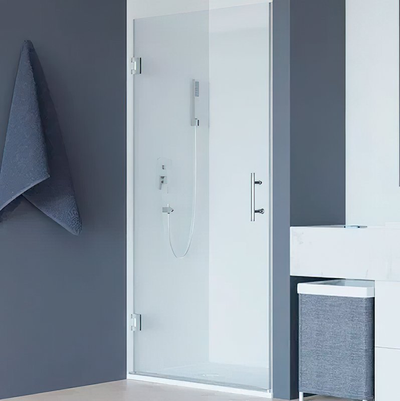 Цвет хромированного профиля идеально дополняет стекло, создавая элегантный и современный вид. Водонепроницаемые стальные петли гарантируют, что дверь не будет протекать, обеспечивая водонепроницаемое уплотнение и предотвращая утечку воды из душевой зоны.