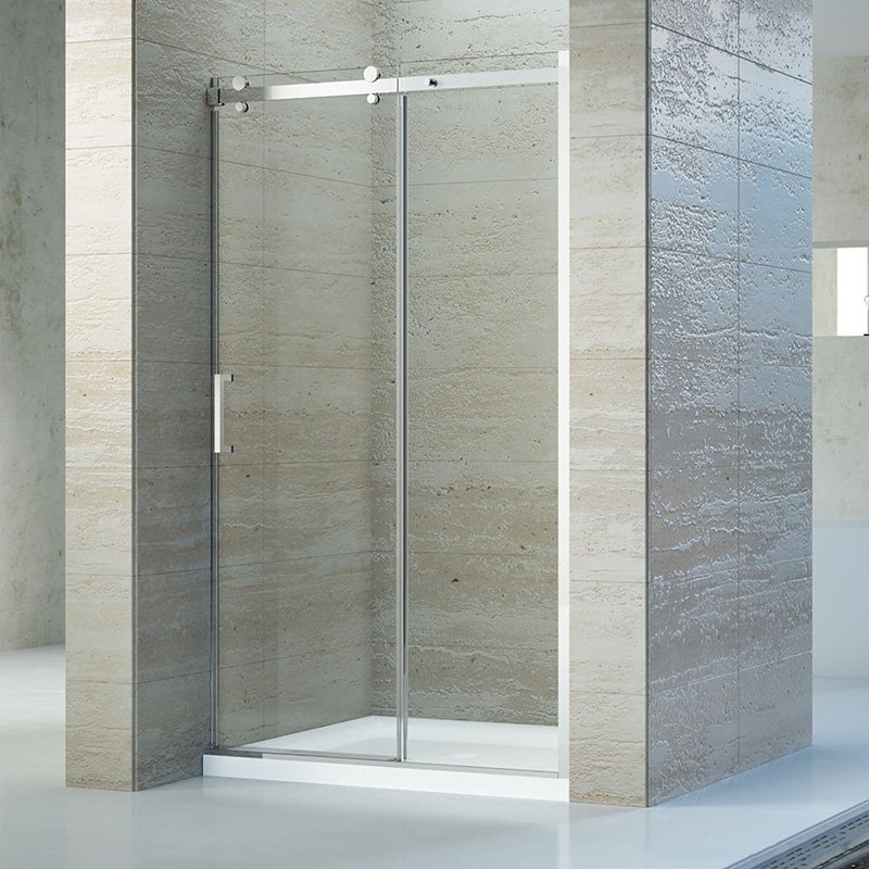 Общая высота двери составляет 1950 мм, позволяя ей легко пропускать даже самых высоких людей. Конструкция раздвижных дверей делает использование двери удобнее и экономит место в ванной комнате. Двойные ролики плавно и бесшумно открывают и закрывают дверь.